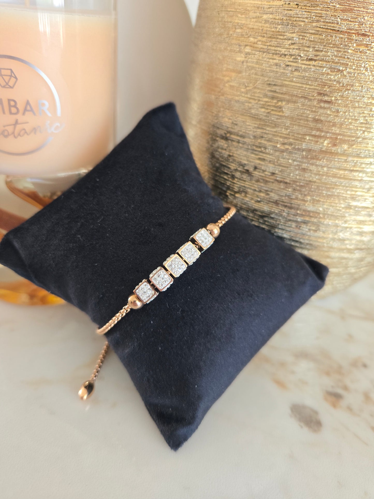 Bracelet rectangulaire en or rose avec pierres blanches