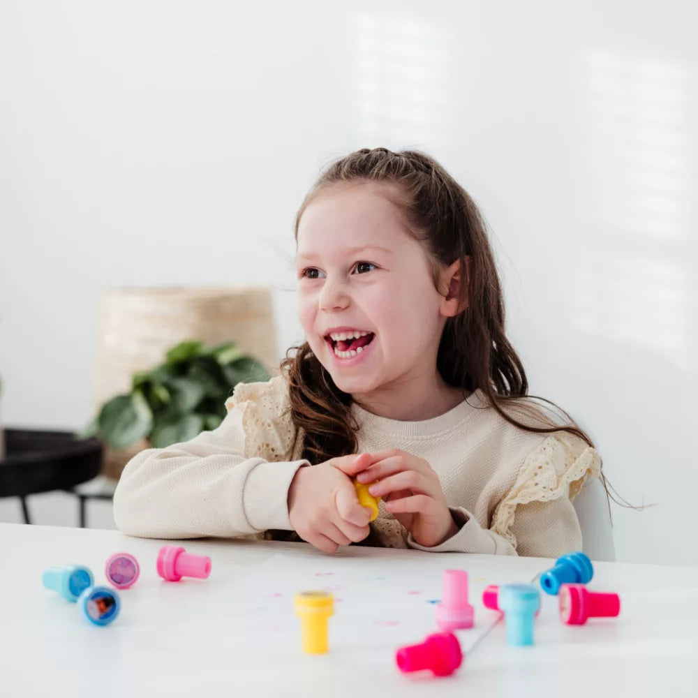 Ce coffret de tampons Barbie Malibu invite les enfants à imaginer, décorer et personnaliser leurs créations avec style. Parfait pour les fans de Barbie, il stimule l’imaginaire et la motricité fine à travers le jeu artistique :