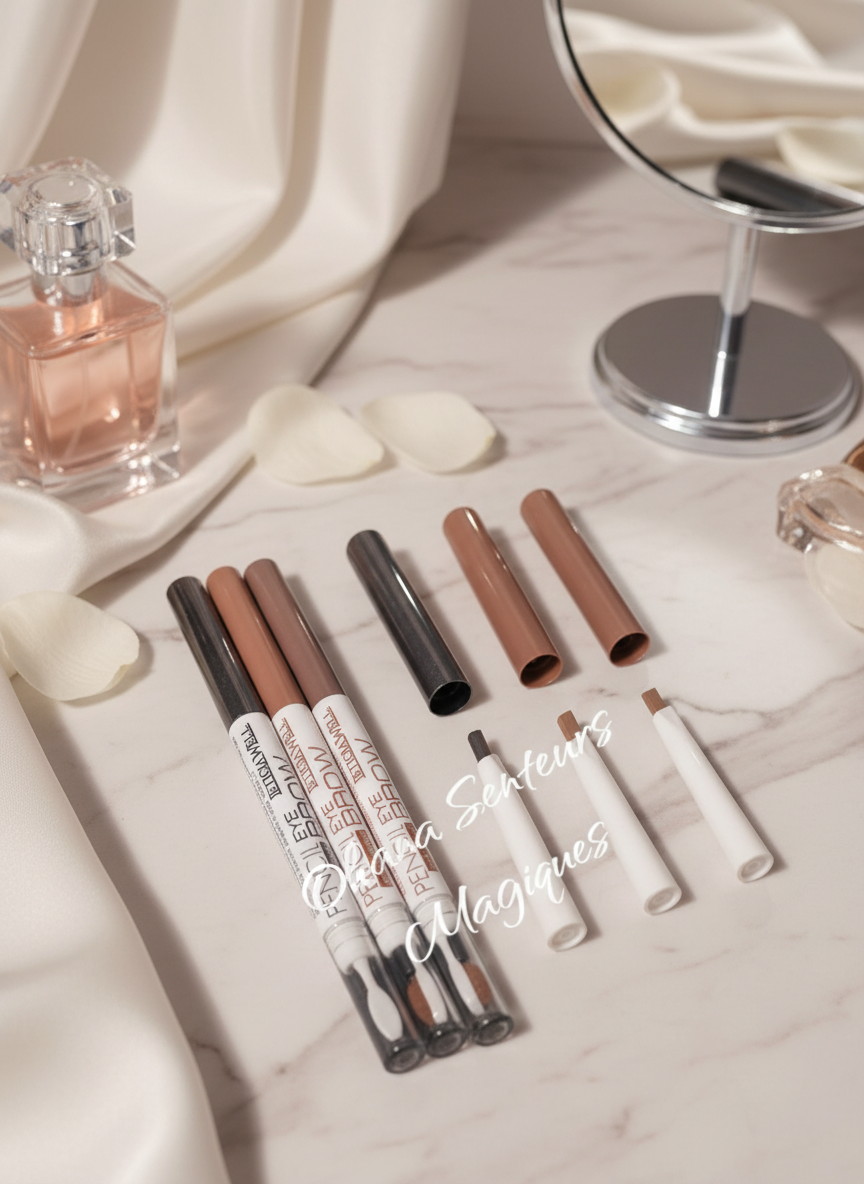 ✨ 3 teintes disponibles – noir, marron foncé et marron clair pour s’adapter à toutes les carnations. 🌟 Double embout pratique – crayon pour remplir et redéfinir, peigne pour discipliner et structurer. 💄 Texture douce et précise – application facile pour un résultat naturel ou plus intense. ⏳ Tenue longue durée – des sourcils impeccables toute la journée. 🎁 Format compact – idéal à glisser dans la trousse de maquillage.