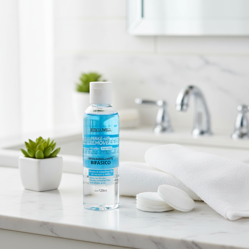 ✨ Un démaquillage efficace et doux en un seul geste ! L’eau micellaire démaquillante biphase Leticia Well est l’alliée parfaite pour nettoyer et apaiser la peau tout en éliminant le maquillage, même waterproof.