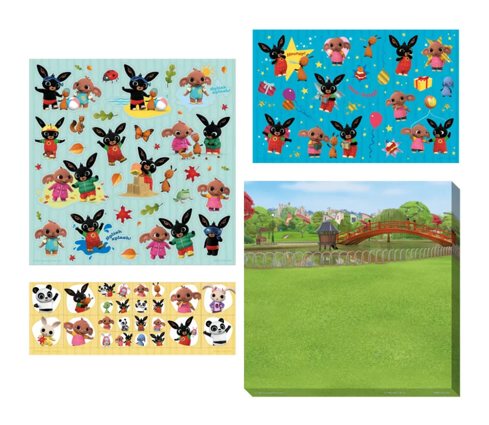 🐰 Ensemble d’autocollants – Bing Coucou, c’est Bing ! Cet ensemble d’autocollants met en scène Bing, Flop, Sula, Pando et tous leurs amis dans des moments tendres, rigolos et du quotidien. Parfaits pour décorer cahiers, carnets, cartes ou créer de jolies scènes à la maison ou à l’école, ces stickers sont une invitation à explorer le monde avec douceur et curiosité.