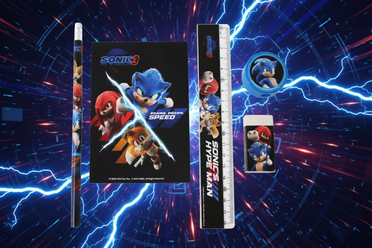 Parfait pour les fans du hérisson le plus rapide du monde, cet ensemble de papeterie 5 pièces Sonic apporte énergie, fun et motivation à toutes les activités scolaires et créatives. Idéal pour l’école, les devoirs ou le dessin, il combine praticité et style avec des visuels dynamiques inspirés de l’univers Sonic.