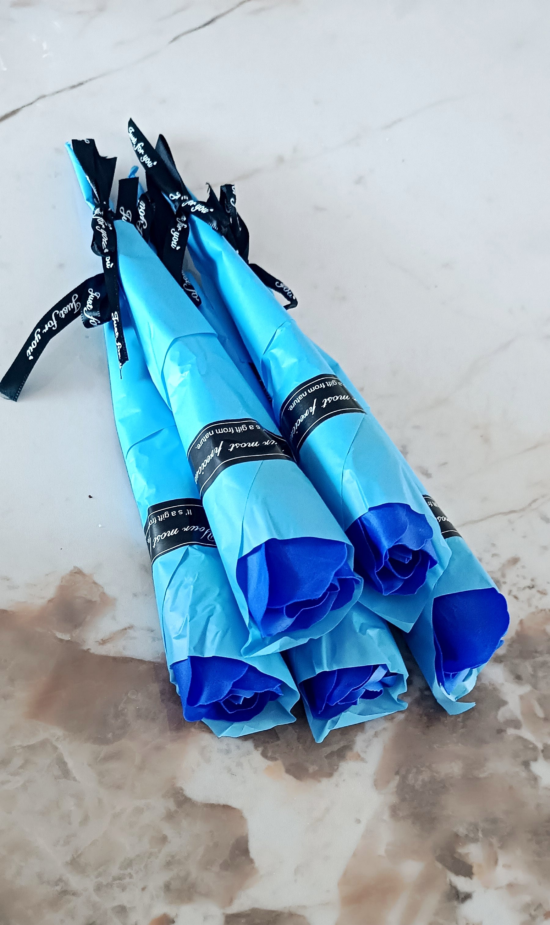 Craquez pour ces ravissantes fleurs de savon bleu électrique, délicatement emballées façon cadeau chic.