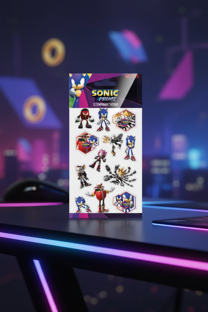 Apportez une dose de fun et de vitesse à vos journées avec le lot de 12 tatouages éphémères Sonic !