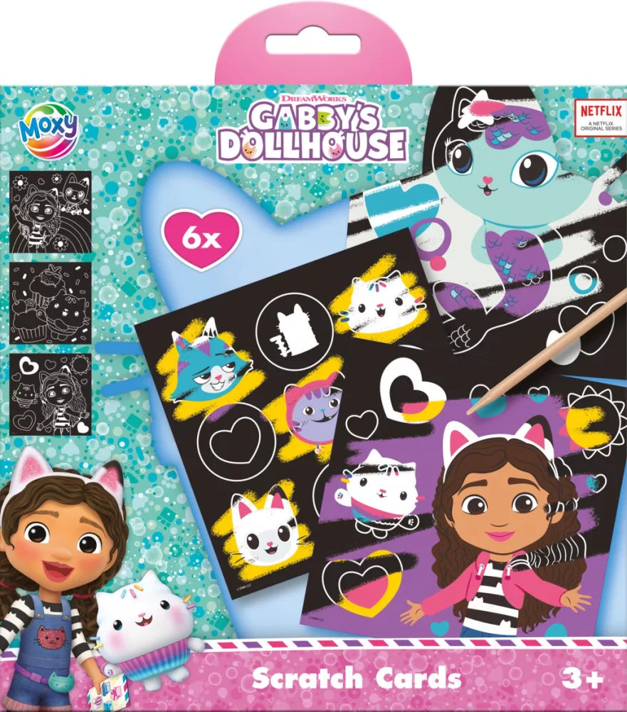Ce lot de 6 feuilles à gratter Gabby invite les enfants à révéler des illustrations colorées inspirées de l’univers de Gabby et la maison magique. Une activité artistique simple et magique, parfaite pour les petites mains curieuses :