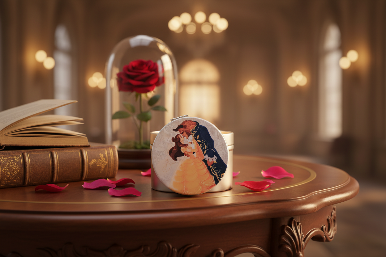 Plonge dans la magie Disney avec ce miroir compact ultra-chic ! Sur le couvercle, Belle et la Bête dansent comme au bal royal 💃🕺—un clin d’œil romantique à ton conte préféré. Parfait pour une retouche digne d'une princesse 👑 !