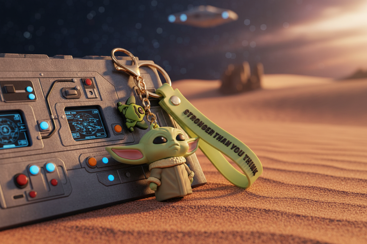 🛸 Porte-clés Grogu – Une dose de mignonnerie venue d’une galaxie lointaine Emporte la tendresse du petit Grogu partout avec toi grâce à ce porte-clés Star Wars inspiré de The Mandalorian. Il comprend un porte-clés argenté, une sangle à thème Star Wars, une breloque 3D de Grogu (aussi connu sous le nom de Bébé Yoda) et une grenouille verte, clin d’œil à ses petites habitudes gourmandes.