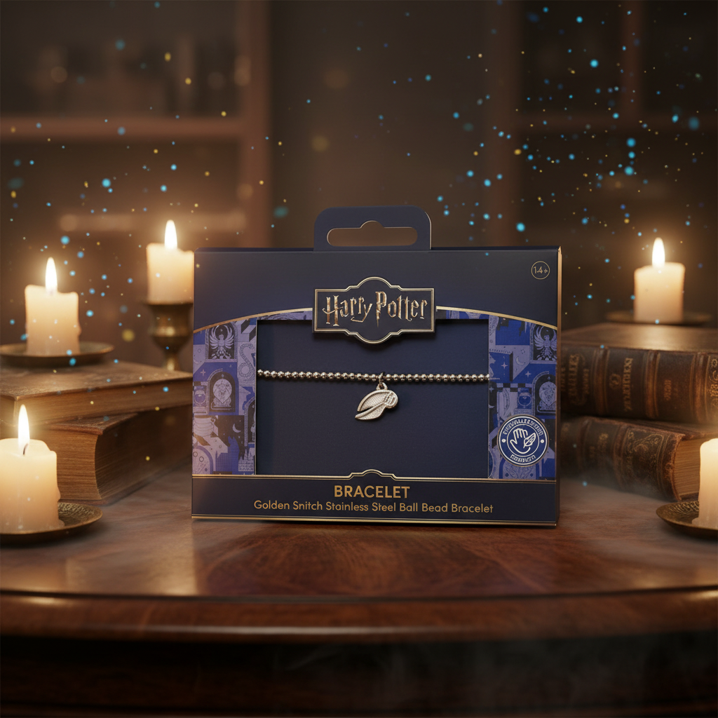 Un bijou discret et magique inspiré du célèbre Vif d’or. Ce bracelet en acier inoxydable est monté sur un élastique de 18 cm, doux pour les peaux sensibles et parfait pour les fans de l’univers Harry Potter.