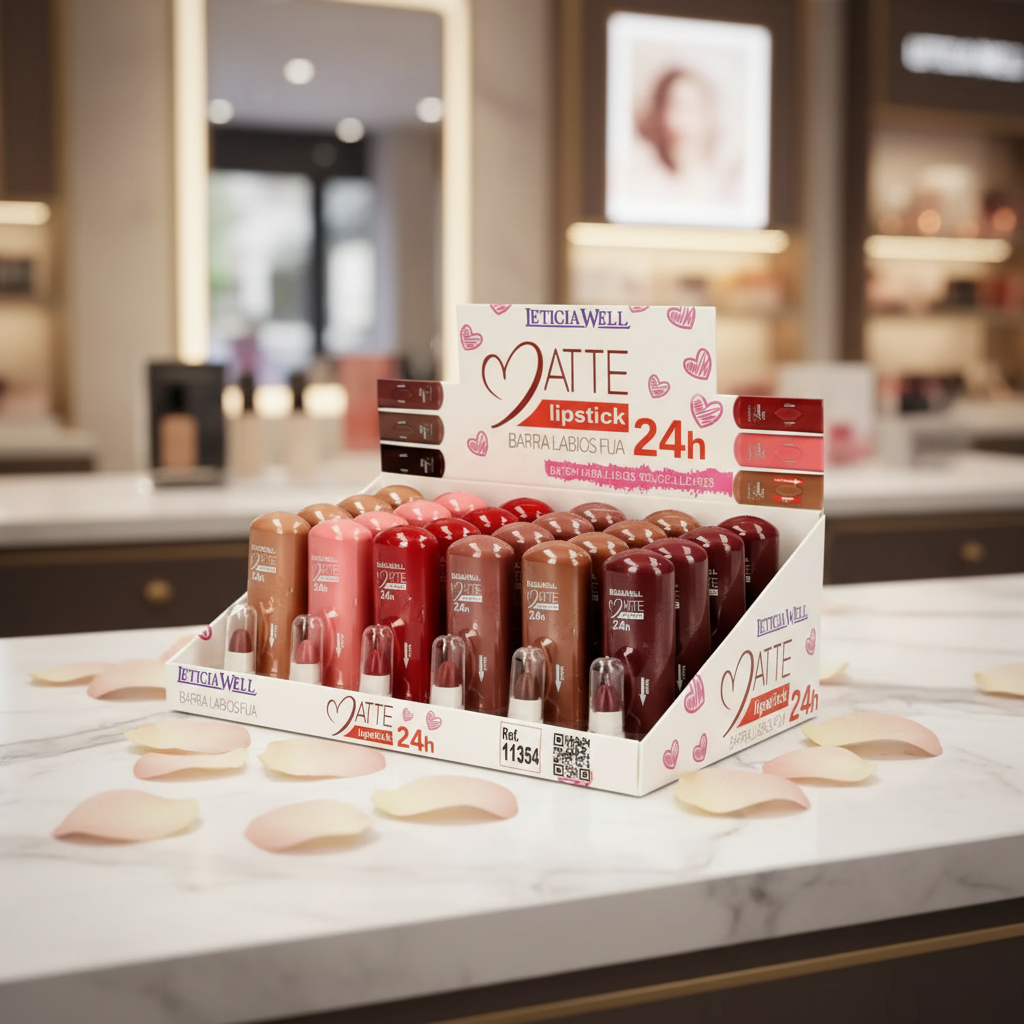✨ Une couleur intense qui dure toute la journée ! Découvrez le Rouge à Lèvres Mat 24h Leticia Well, l’allié beauté qui combine élégance et confort.