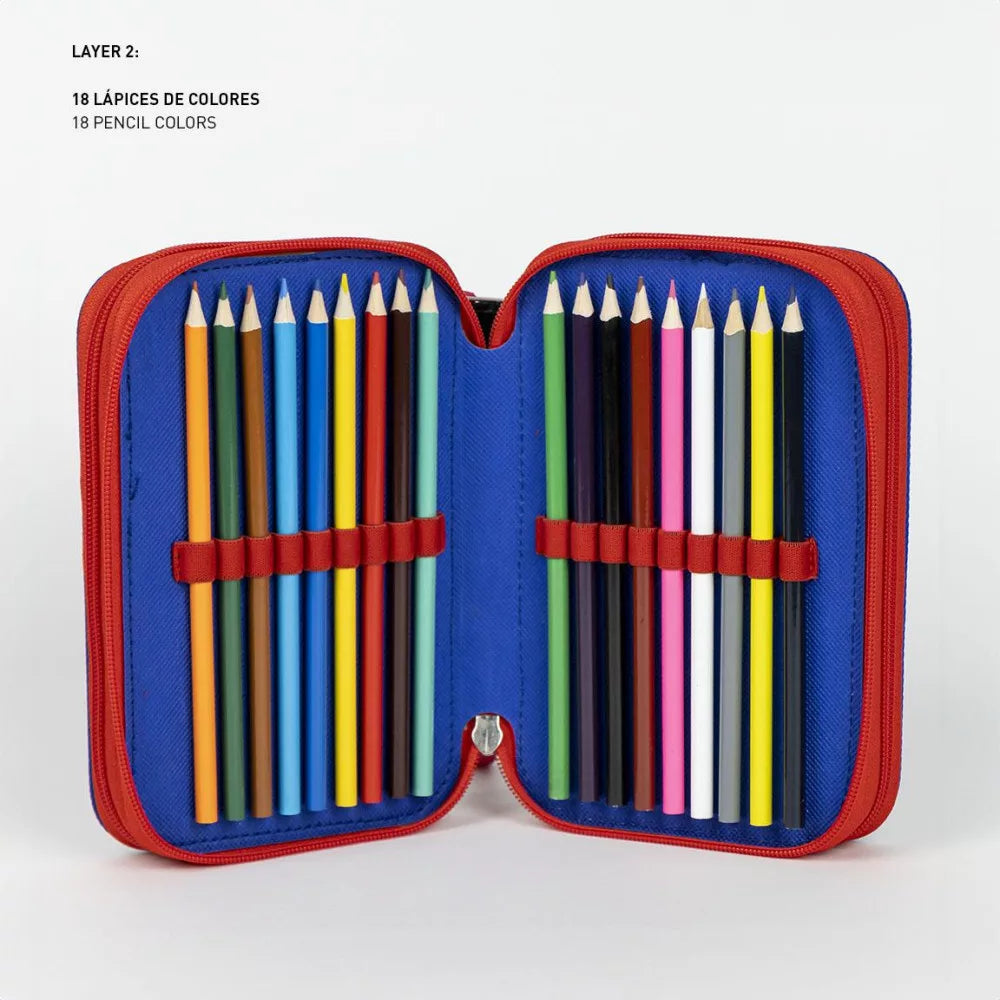 Trousse à crayons remplie à 3 niveaux Spiderman